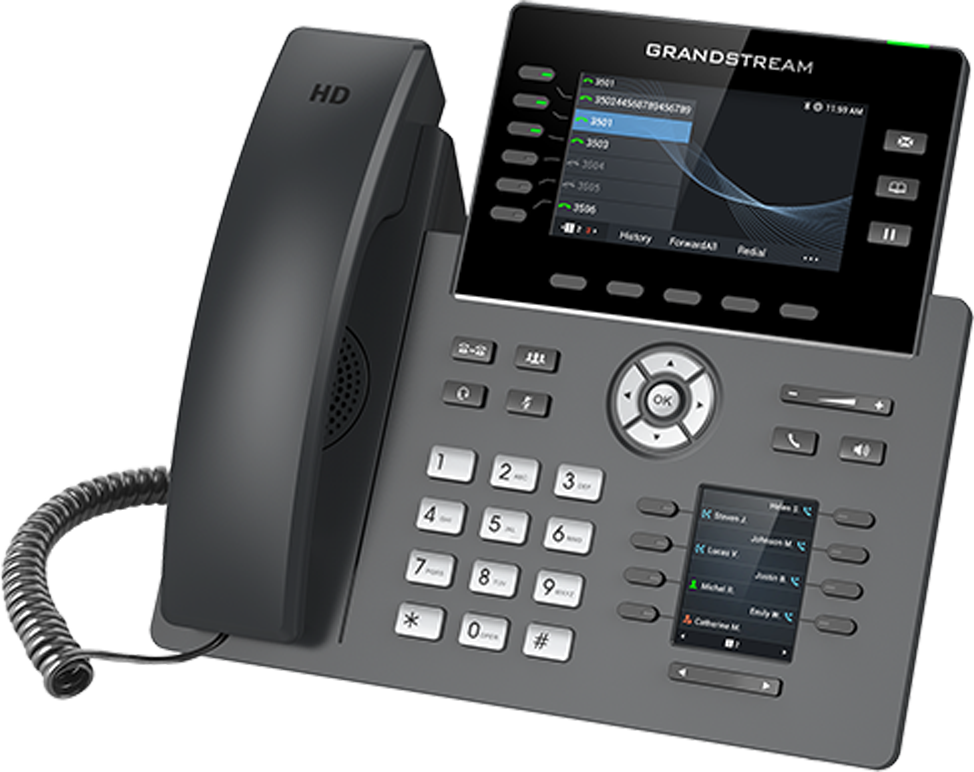 The GRP2616 is a high-end carrier-grade IP phone designed with zero-touch provisioning for mass deployment and easy management. It supports 6 lines and 6 SIP accounts while featuring a sleek design and a suite of next-generation features including integrated Wi-Fi, Bluetooth support, 48 virtual multi-purpose keys (MPKs), dual Gigabit ports and more.